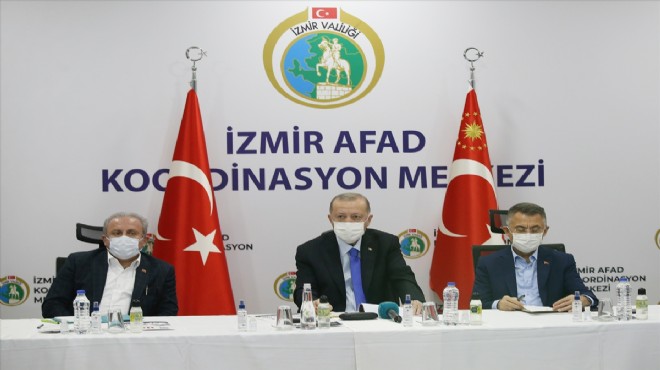Cumhurbaşkanı Erdoğan, sürecin en başından itibaren başta TBMM Başkanı Mustafa Şentop ve Cumhurbaşkanı Yardımcısı Fuat Oktay olmak üzere, Sağlık, Adalet, Ulaştırma, Enerji ve Tabii Kaynaklar, Kültür ve Turizm, Aile, Çalışma ve Sosyal Politikalar, Milli Eğitim, Tarım ve Orman, Çevre ve Şehircilik Bakanları, Diyanet İşleri Başkanı, AFAD ve Türk Kızılay’ının hep birlikte İzmir’de bulunduğunu kaydetti. Erdoğan, sözlerini şöyle sürdürdü: