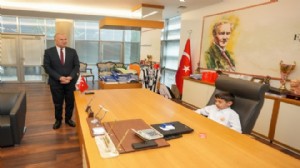 Saat 10.00’da başlayan kutlama programında ise İzmir Valisi Dr. Süleyman Elban’a öğrenciler tarafından çiçek takdim edildi.