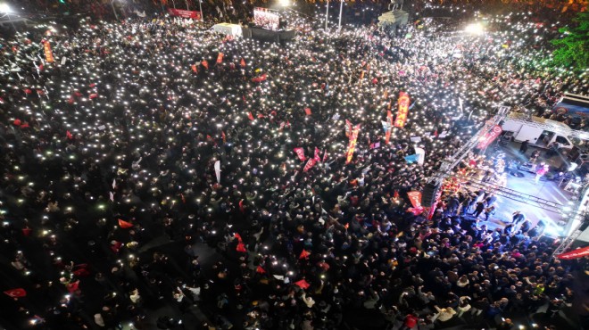 Cumhuriyet Meydanını dolduran binlerce İzmirli, İstanbul Büyükşehir Belediye Başkanı İmamoğlu’nun gözaltına alınmasını protesto etti. Meydanı dolduran kalabalık, İl Başkanı Aslanoğlu’nun çağrısıyla hep bir ağızdan ‘Yiğidim, aslanım burada yatıyor” türküsünü söyledi.