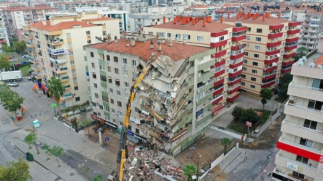 İzmir'de 30 Ekim 2020'de meydana gelen 6,6 büyüklüğündeki depremde yıkılması sonucu 10 kişinin yaralandığı Cumhuriyet Sitesi C Blok'a ilişkin hazırlanan iddianamede, 3 sanığın 8 aydan 4,5'er yıla kadar hapsi istendi. (AA)