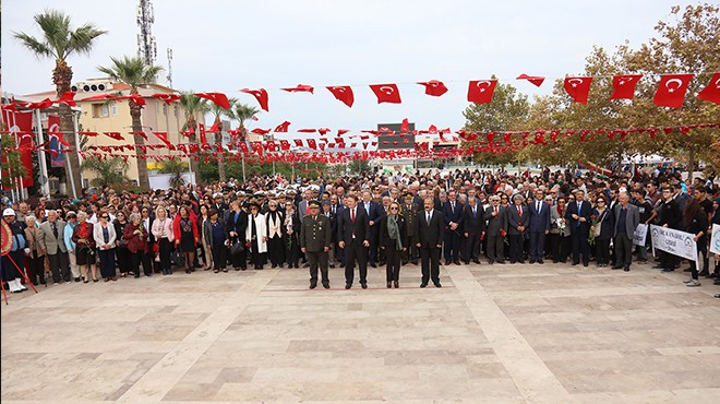Urla Kaymakamlığı, Garnizon Komutanlığı ve Urla Belediye Başkanlığı çelenklerinin sunumu ile başlayan program saygı duruşu ve İstiklal Marşı’nın okunması ile sona erdi.