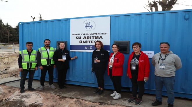 DEÜ’nün Bilimsel Araştırma Projeleri (BAP) kapsamında ileri seviyedeki içme suyu tesisinin oluşturulduğunu aktaran Rektör Hotar, “Tamamı Üniversitemizin öz kaynakları ile hayata geçirilen projenin tasarımını Üniversitemiz Mühendislik Fakültesi Çevre Mühendisliği Bölümü Öğretim Üyesi Prof. Dr. Azize Ayol tarafından yapıldı ve yine Çevre Mühendisliği bölümümüz kurulumunu tamamladı. Üst düzey bir arıtma tesisi olarak bulunduğu konteyner kentin ihtiyaçlarına göre yapılan tesiste, ön filtrasyon, aktif karbon, ultrafiltrasyon membran sistemi ve dezenfeksiyon üniteleri bulunuyor. Ters ozmos üniteleri ile de geliştirilecek arıtma tesisi, bölgedeki içme suyu sorununa yönelik önemli bir ihtiyacı karşılamış olacak. Bölge için örnek teşkil eden tesisimizin hayırlı olmasını diliyoruz” şeklinde konuştu.
