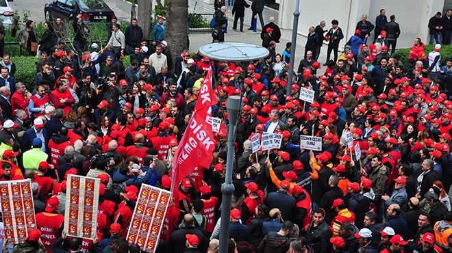 İzmir’deki yerel yönetimlerde çalışan ve 696 sayılı KHK ile işini kaybeden eski hükümlü, emekli ve emekliliğe hak kazanan yaklaşık 6 bin işçi için yarım gün süreyle iş bırakan DİSK üyeleri, 'uyarı eylemi'nin ilkini gerçekleştirdi. Konak'taki eski Sümerbank binası önünde toplanan işçiler, ‘Memur değil işçiyim, ekmeğimle oynama’, ‘Çalışırken müjde dedin sonra işimizden ettin’ yazılı dövizler taşıdı. İşçiler, ‘Hak, hukuk adalet’, ‘Hükümet yasanı al başına çal’, ‘Direne direne kazanacağız’, ‘İş, aş, adalet’, ‘Kurtuluş yok tek başına, ya hep beraber ya hiçbirimiz’ sloganları attı. İşçilere; Kamu Emekçileri Sendikaları Konfederasyonu (KESK), Alevi dernekleri, CHP, Tüm Yerel-Sen üyeleri ve çok sayıda sivil toplum kuruluşu üyesi destek verdi.