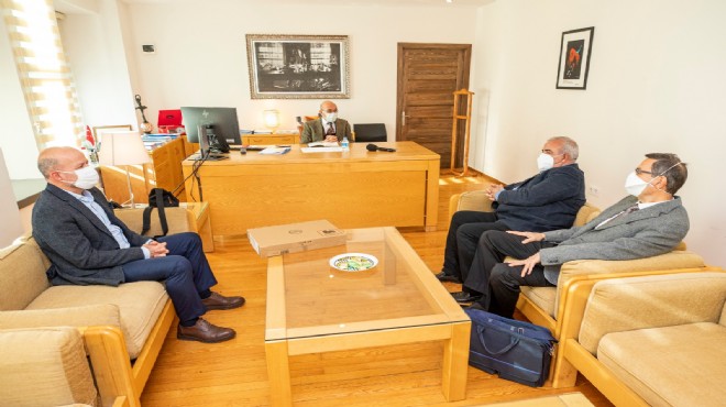 Ziyarette son günlerin önemli başlıklarından biri olan kuraklığa değinen İzmir Büyükşehir Belediye Başkanı Tunç Soyer, “Küresel iklim değişikliğinin sonunda bir çölleşmeye doğru gittiğimizin farkındayız. Tarımsal sulama da bu işin kafa yormamız gereken önemli başlıklarından biri. Akıllı sayaç kullanılmasından suyun tasarruflu harcanmasına kadar bir çok konu başlığı var. Derneğinizle ortak çalışmamızı gerektiren başlıkların çıkacağı ortada” dedi.