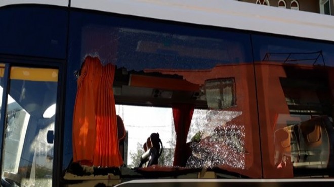 Saldırı nedeniyle servis midibüsünün bazı camları kırıldı. (AA)