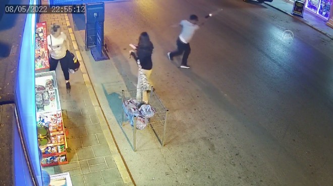 Çevredeki bir iş yerinin güvenlik kamerasının kaydettiği olay sırasında yolun karşısına geçmeye çalışan bir kadının korkarak markete sığındığı da görülüyor. (AA)