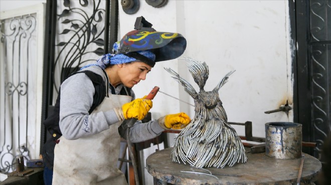 Elinde kıvılcımlar saçan demir kesme makinesiyle demire kıvrımlı şekiller kazandıran Gülcan ustanın hayali ise bir sanat atölyesi açabilmek.