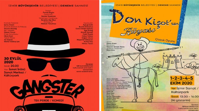İzmir Büyükşehir Belediyesi Deneme Sahnesi Kuvayi Milliye’nin ardından iki yeni oyunla daha İzmirlilerle buluşacak. Gangster 30 Eylül Çarşamba 20.00’de İsmet İnönü Sanat Merkezi’nde, Don Kişot’un Rüyası ise 1 Ekim 13.00’te İzmir Sanat’ta ilk kez sahnelenecek.