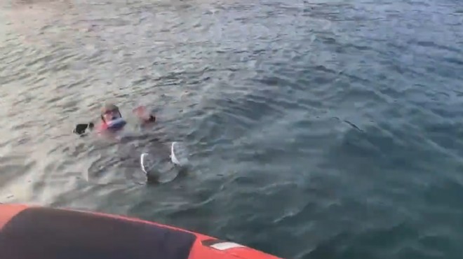 Yaşlı kadının kurtarılma anına ait görüntüler, Sahil Güvenlik Komutanlığının sosyal medya hesabından paylaşıldı.(AA)