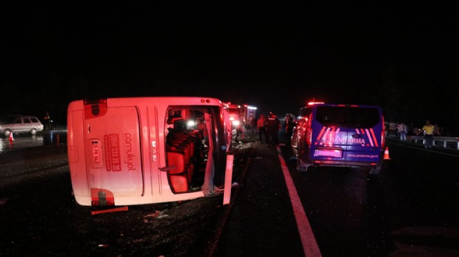Denizli'nin Pamukkale ilçesinde devrilen yolcu otobüsündeki 28 yolcu yaralandı.