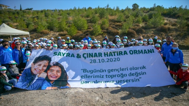 İzmir'de geçen yıl meydana gelen depremde Rıza Bey Apartmanı'nın enkazındaki arama kurtarma çalışmalarında 75 saat sonra cansız bedenlerine ulaşılan 15 yaşındaki ikizler Çınar ve Sayra Alpgündüz adına 1500 fidan dikildi.