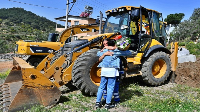 İzmir Büyükşehir Belediyesi İZSU Genel Müdürlüğü’nde iş makinası operatörü olarak Ocak ayında göreve başlayan Nurcan Özgül Fetah, bir hayalini daha gerçekleştirdi. Eğitim aldığı sırada verdiği röportajda en büyük hayalinin oğlunun kendisini bu işi yaparken görmesi olduğunu söyleyen Fetah’a oğlu Çınar anneler gününde sürpriz yaptı. Karşıyaka Sancaklı Mahallesi’nde kazı çalışması yaptığı sırada karşısında oğlunu gören kadın iş makinası operatörü Fetah, göz yaşlarına hakim olamadı. Babasıyla birlikte çalışma alanına gelen Çınar ise elinde iş makinası oyuncağı ve çiçekle annesine sarıldı.
