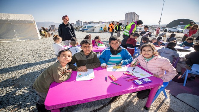 İzmir Büyükşehir Belediyesi ilki Hatay’da kurulan ve binin üzerinde depremzedenin kaldığı çadır kentte barınma, yemek, yardım ve sağlık hizmetlerinin yanı sıra sosyal ve psikolojik destek de sunuyor. Depremzedelerin travma sürecini daha rahat atlatabilmesi için “Psikososyal Destek Ağı” projesini başlatan İzmir Büyükşehir Belediyesi, çadır kentte görev yapan psikolog ve sosyologlar aracılığıyla depremzedelere ulaşıyor. Çocuklar için Masal Evi’nin hizmet vermeye başladığı çadır kentte ANAHTAR Kadın Çalışmaları Bütüncül Hizmet Merkezi personeli de kadınlara yönelik çalışmalar yapıyor.