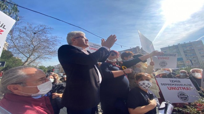 GERÇEKİZMİR - İzmir Depremzedeleri Dayanışma Derneği(İZDEDA) Bayraklı’da bir araya gelerek tepki ve taleplerini haykırdı. ‘Sesimizi duyan yok mu’ diyerek alana inen depremzedeler adına konuşma yapan dernek başkanı Haydar Özkan, Şehir Plancıları Odası’nın emsal kararları için açtığı davaya tepki gösterirken, İzmirli milletvekillerine de sitemde bulundu.