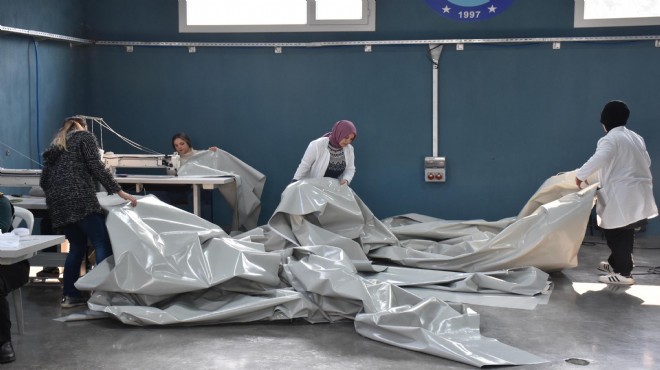 İzmir'in Kemalpaşa ilçesinde meslek lisesi öğrencileri ve halk eğitim merkezi kursiyerleri tarafından depremzedeler için çadır ve soba üretimi gerçekleştiriliyor. Kemalpaşa Mopak Mesleki ve Teknik Anadolu Lisesi'ndeki atölyelerde üretilen çadır ve sobalar afet bölgelerine ulaştırılıyor. Metal teknolojileri bölümü öğrencileri soba üretip kaynak yaparak çadırların iskelet kısımlarını oluştururken, Kemalpaşa Halk Eğitim Merkezi'ndeki kursiyerler Ankara'da aldıkları eğitimle AFAD ölçülerindeki çadırları dikiyor. Öğrencilerin 210 adet soba ürettiğini aktaran Kemalpaşa MOPAK Mesleki ve Teknik Anadolu Lisesi Müdürü Hamit Dursun, "Büyük bir felaketten geçtik. Depremzede kardeşlerimize bir faydamız olması için halk eğitim merkeziyle birlikte çadır üretmeye karar verdik. Şu an depremzedelerimiz için her gün 3 çadır üretiyoruz. Bu sayının artmasını amaçlıyoruz. Aynı zamanda metal bölümü öğrencilerimizle çadır içini ısıtmak için sobalar üretmeye başladık. Şu ana kadar 210 sobayı ürettik ve sevk ettik. Atölyelerimizi bunun için tahsis ettik. Çocuklarımız heyecanla üretime başladılar ve sobaları üretiyorlar. Oradaki acılara bir nebze olsun merhem oluyorlar" dedi.