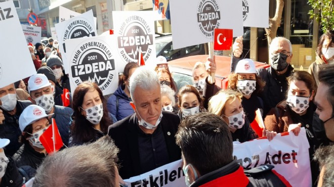 TMMOB'un bu hamlesine depremzedelerden tepki geldi. İzmir Depremzedeleri Dayanışma Derneği (İZDEDA) ve depremzedeler bugün Alsancak Mimarlar Odası önünde yaptıkları eylem ve basın açıklamasıyla TMMOB'u protesto etti.