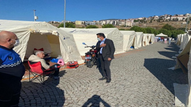 Yıkılan binaların olduğu alana giden Dikili Belediye Başkanı Adil Kırgöz de çalışmaları inceledi, vatandaşlarla bir araya gelerek geçmiş olsun dileklerini sundu.