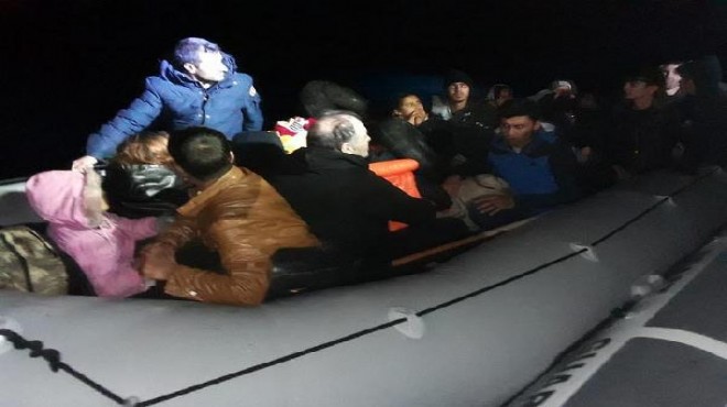 Dikili ilçesi açıklarında, çarşamba günü lastik botla yasa dışı geçiş yapıldığı ihbarı üzerine ekipler harekete geçti. Görevlendirilen Sahil Güvenlik botu tarafından durdurulan lastik bot içerisinde Afganistan uyruklu 25 göçmen yakalandı. 7'si erkek, 5'i kadın, 13'ü çocuk göçmen kıyıya getirildi. Göçmenler, göçmen kimlik tespit işleminin ardından İl Göç İdaresi Müdürlüğü'ne teslim edildi. (DHA)