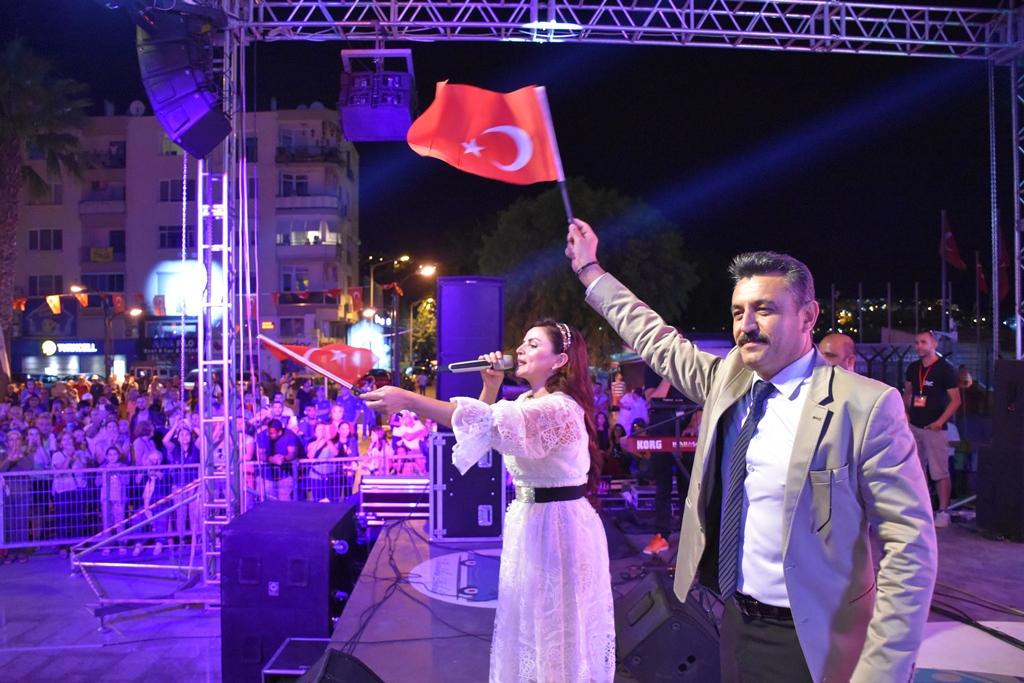 Konser öncesi Atatürk Meydanı’nı dolduran kalabalığa seslenen Dikili Belediye Başkanı Adil Kırgöz, tarihte şanlı bir yere sahip olan 14 Eylül gününün iyi anlaşılması ve iyi benimsenmesi gerektiğine vurgu yaparak, “Bugünleri bizlere emanet eden koca yürekli insanlar adına büyük bir sorumluluk yaşıyoruz. O gün tüm zorluklara rağmen, emperyalist güçlere karşı dimdik ayakta duran bir milletin torunları olarak, bugün ülkemiz üzerinde yaşanan oyunlara boyun eğmemeli ve 97 yıl önceki ruh ile dimdik ayakta durmalıyız. Gazi Paşa’nın dile getirdiği “Cumhuriyeti biz kurduk. Onu yaşatacak ve koruyacak olan sizlersiniz” sözünü kendimize rehber almalı, çalışmalı, üretmeli ve geliştirmeliyiz. Bu kapsamda Dikili Belediyesi olarak, sanatıyla, bilimiyle, teknolojisiyle gelişmiş bir kent yaratarak, çağa ayak uyduran bir Dikili hedefimize hiç durmadan yürüyeceğiz” dedi.