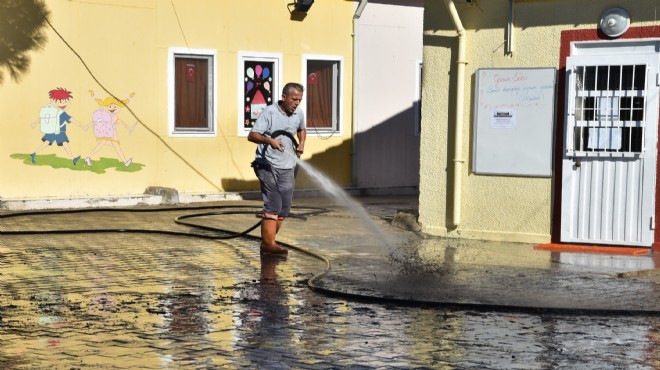 Dikili ilçesi genelindeki okullarda gerçekleştirilen bakım, onarım ve tadilatlar sırasında temizlik ve hijyen çalışmaları da unutulmuyor. Okullarda gerçekleştirilen çalışmalarla bir yandan eksiklikler tamamlanırken, diğer taraftan öğrenciler daha temiz ve hijyenik iyi şartlarda eğitim almaları sağlanıyor. Temizlik İşleri Müdürlüğü ekipleri de bu program kapsamında Kıratlı Mahallesi'nde yer alan Esin Çağdaş İlkokulu’nda okul içi ve okul bahçesinde temizlik seferberliği ilan etti. Sabahın ilk saatlerinden ders başlama ziline kadar bahçe temizliğinin, ders bitiş zilinin ardından bina içi temizliğin yapıldığı çalışmalarla okul içi ve dışı pırıl pırıl bir görünüme kavuşturuldu.