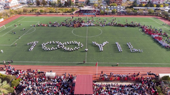 İzmir'in Dikili ilçesinde de 100.yıl kutlamaları Dikili Erdal İnönü Stadyumu’nda düzenlenen törenle yola çıktı.