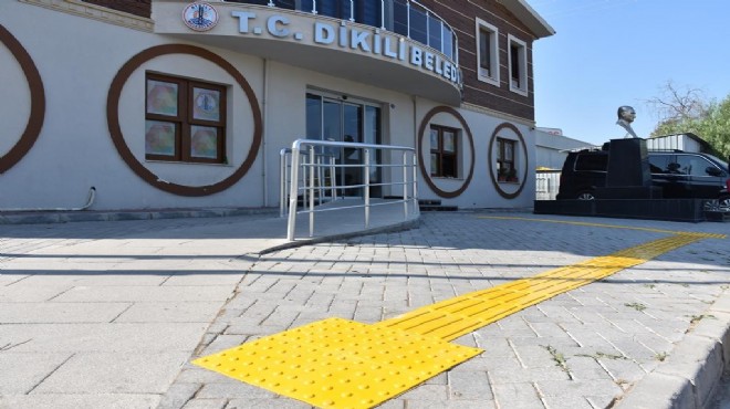 Sarı çizgi projesinin ilk etabında Dikili Belediyesi hizmet binası önü ve hizmet binası içerisine sarı çizgiler döşenerek görme ve ortopedik engelli vatandaşların belediye ihtiyaçlarında kendilerini daha rahat hissetmeleri hedeflendi.
