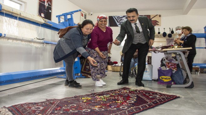 Dikili Belediyesi Kadın Dayanışma Merkezi ve Dikili Belediyesi Roman Kültür Merkezi Kadın Dayanışma Ek Hizmet Binası’nda düzenlenen Yağcıbedir Halı Dokumacılığı, El Sanatları, Çini ve Seramik kurslarına katılan kadınlar el becerileri kazanmanın yanı sıra ürettikleri eserlerden gelir de elde edebiliyorlar.