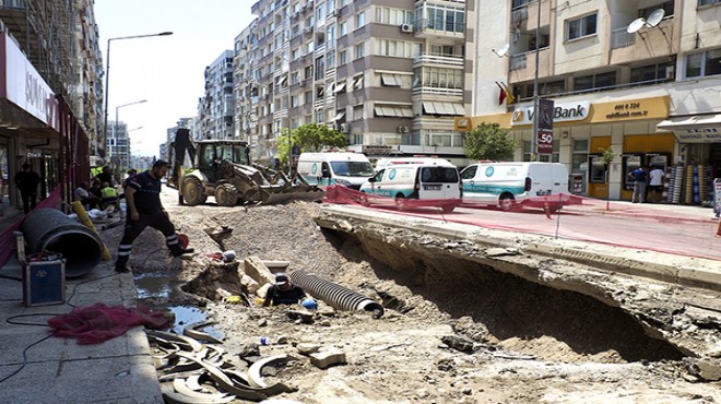 Kazımdirik Mahallesi Mustafa Kemal Caddesi'nde iş makineleriyle yürütülen kazı çalışmaları sırasında doğal gaz borusunda patlama meydana geldi.