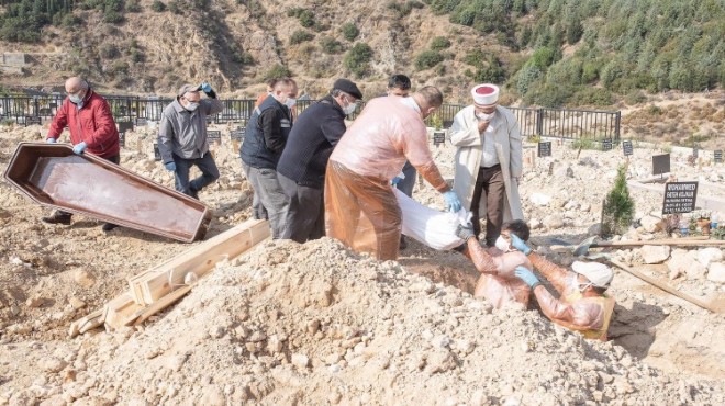 Salgının başlarında pek çok ilde olduğu gibi cenazelerin tabutla toprağa verildiğini hatta kireçleme yapıldığını kaydeden İzmir Büyükşehir Belediyesi Mezarlıklar Daire Başkanı Hülya Şahin, bir süredir bu işlemlerin uygulanmadığını ve kentteki ölüm rakamlarının Nisan ayına göre daha az olduğunu açıklıyor: “Çünkü personelimiz kendi sağlığından endişe ediyordu. Ancak Halk Sağlığı Müdürlüğü, tabutla gömme ve kireçleme gibi tedbirlere gerek olmadığını, ceset torbaları ile de defini gerçekleştirebileceğimizi söyledi. Fakat buna da aileler tepki gösterdi. ‘Acaba kefenlenmiyor mu, yıkanmıyor mu?’ gibi olumsuz şeyler düşündüler. Yıkama işlemi ilk başlarda Örnekköy’deki gasilhanemizde yapılıyordu. Ama artık Doğançay Mezarlığı içerisinde bulunan gasilhanemizde yapılıyor. Çünkü bu bölgelerde cenaze sayıları artınca sosyal mesafe açısından sorun yaşamak istemedik. Definler de büyük oranda burada yapılıyor. Bulaşıcı hastalıklardan ölenleri defnetmek için mezarlığımız içerisinde 3 adet ada belirledik. Tabiî ki vatandaşlarımız cenazelerini varsa aile mezarlığına ya da isterlerse şehir dışına götürüp defnediliyorlar. Üste gömü istendiğinde bu talebe de karşılık veriyoruz. İzmir’de ölüm oranında şu an ciddi artış yok. Bir süredir stabil ilerliyor. Nisan ayına göre ölü sayısı daha az diyebilirim.” (Çağla Geniş / İlkses Gazetesi)