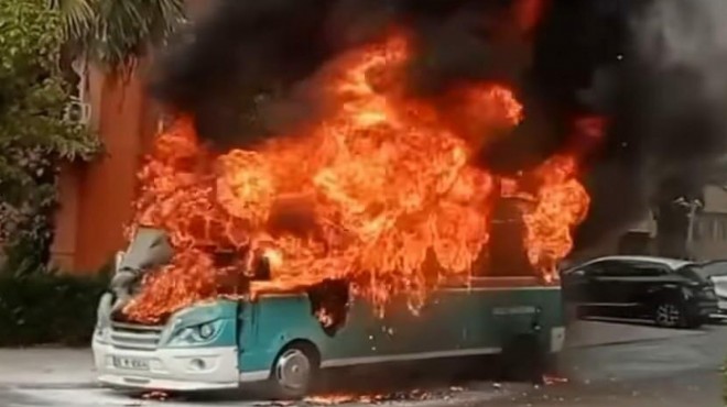 Gaziemir-Buca seferinin yapıldığı, 35 M 8964 plakalı şehir içi yolcu minibüsü, Gaziemir Nevvar Salih İşgören Hastanesi yakınlarında alev aldı. Şoför, aracı hemen yol kenarına çekip, az sayıdaki yolcuyu tahliye etti. 112 Acil Çağrı Merkezi'ne haber verilirken, şoför de alevleri söndürmeye çalıştı. İhbarla gelen itfaiye ekiplerinin müdahalesi ile yangın söndürüldü. Bu anlar, güvenlik kamerasına yansırken, minibüs ise kullanılamaz hale geldi. Yangın ile ilgili soruşturma başlatıldı. (DHA)
