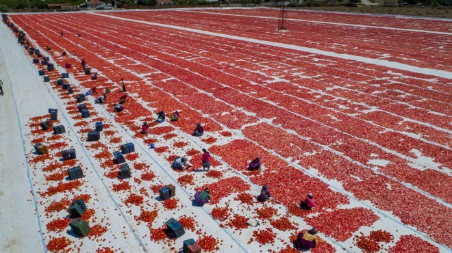 Türkiye'nin kurutulmuş domates ihracatında lider konumda bulunan Ege Bölgesi'nde hasadın ardından domatesler kurutma işlemi için güneşe serildi.
