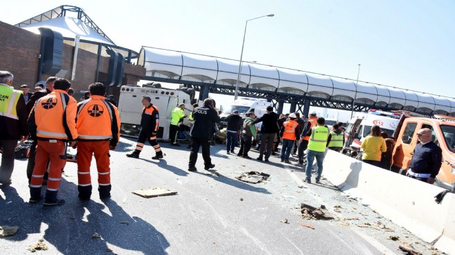 Yüksel'in kontrolünden çıkan minibüs, beton bariyerlere çarparak, karşı şeride geçip, Önder Acılar'ın kullandığı 35 KF 8463 plakalı otomobile de çarptıktan sonra devrildi.