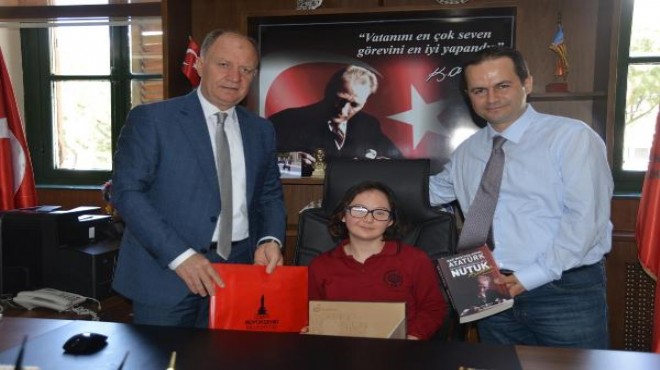 Nevvar Salih İşgören Vakfı tarafından milli sporcu İrem Öztekin'e tablet bilgisayar, Türkiye İş Bankası Yayınları genişletilmiş baskı Nutuk kitabı ve İzmir Büyükşehir Belediyesi'nin Türk Bayrağı olan çanta hediye edildi.