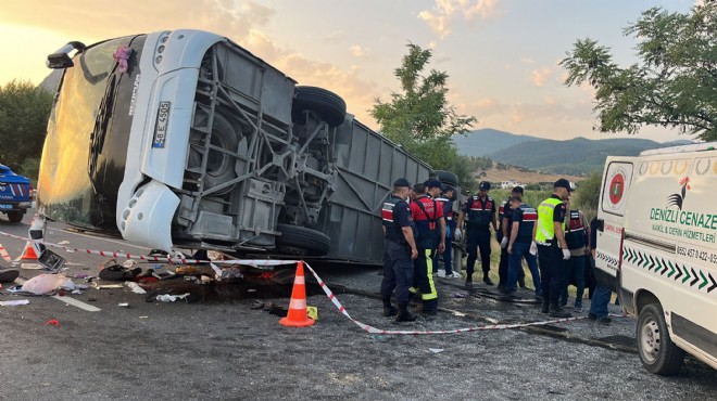 Denizli'nin Honaz ilçesinde kum yüklü kamyonun karşı şeride geçerek otobüse çarpması sonucu 6 kişi yaşamını yitirdi, 42 kişi yaralandı.