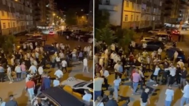 Görüntülerde kadınların da karıştığı kavgada yaklaşık 40 kişi birbirlerine saldırdığı anlar yer aldı.