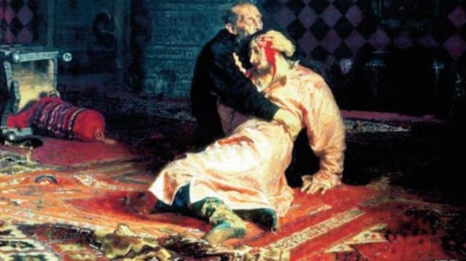 Rus resminin paha biçilmez tablolarından biri olarak kabul edilen İlya Repin’in 1885 tarihli “Korkunç İvan ve Oğlu İvan” adlı tablosu, daimi olarak sergilendiği Moskova’daki Tretyakovski Galerisi’nde bir vandalın saldırısına uğradı. Önceki gece kapanış saatine doğru içkili halde galeriye giden 37 yaşındaki bir şahıs, bıçaklayarak yaraladığı ölümün eşiğindeki oğluna sarılan İvan’ın resmedildiği tabloya saldırdı. Elindeki metal çubukla tabloyu koruyan kalın camı kıran saldırgan, kanvasa da darbe vurarak esere büyük zarar verdi.