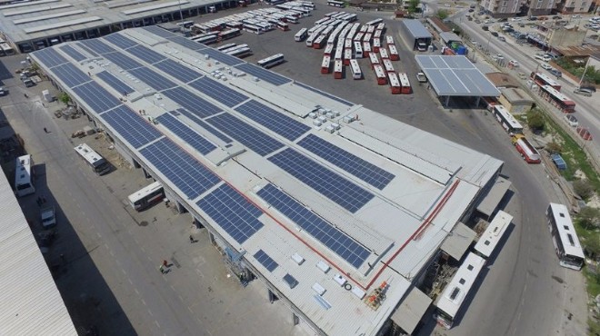 Türkiye’nin ilk elektrikli otobüs filosunu oluşturarak örnek olan ESHOT Genel Müdürlüğü, güneş enerjisi santrali (GES) ve güneş enerjili durak yatırımları ile de çevre sağlığına karşı azami hassasiyet gösteriyor. ESHOT Gediz Garaj ve Atölye tesislerinin çatılarında hayata geçirilen 10 bin metrekarelik GES sayesinde, bugüne dek yaklaşık 5 milyon TL’lik tasarruf sağlandı. Üretilen elektrik enerjisi ile 20 adet elektrikli otobüsün tamamı şarj ediliyor. Artan yüzde 32’lik enerji ise atölye ihtiyaçlarında kullanılıyor.