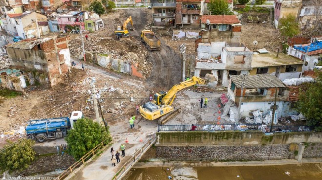 Dev proje kapsamında kamulaştırması tamamlanan 76 binanın yıkımı tamamlanırken Başkan Soyer, “50 futbol sahası büyüklüğündeki yaklaşık 400 dekar alan, doğayla ve insan tabiatıyla uyumlu yeşilin en güzel rengiyle örülecek” dedi.