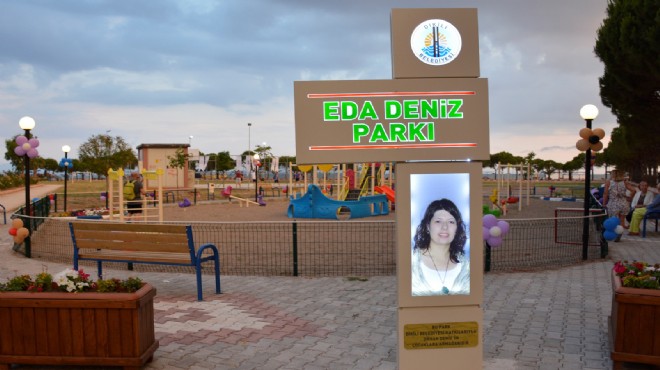 28 yaşında yaşamını yitiren genç ve başarılı İnşaat Mühendisi Eda Deniz’in adına yaptırılan çocuk parkın açılışında saygı duruşu ve İstiklal Marşı'nın okunmasının sonrasında kurdeleyi babası Orhan Deniz ile birlikte Çandarlı Tatil Köyü Sitesi Başkanı Galip Köylü, Dikili Belediyesi Parklar ve Bahçeler Müdür Vekili Adnan Özdemir ve Dikili Belediye Başkanı Mustafa Tosun kesti.