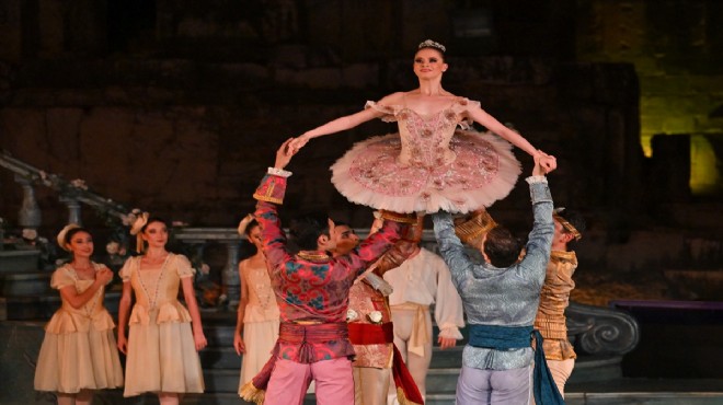 Efes Antik Kenti Büyük Tiyatro'da İzmir Devlet Opera ve Balesi (İZDOB) sanatçılarının sahnelediği Rus besteci Çaykovski'nin "Uyuyan Güzel" eseri sanatseverler tarafından dakikalarca ayakta alkışlandı.