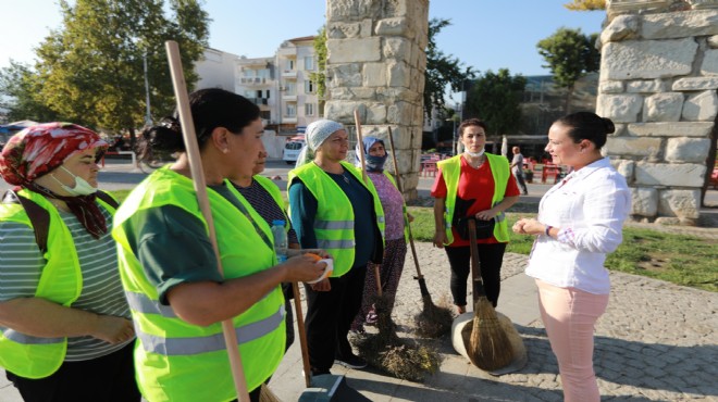 Efes Selçuk’ta bir ilk gerçekleşerek kadın süpürgeciler temizlik çalışmalarına başladı. Efes Selçuk Belediye Başkanı Filiz Ceritoğlu Sengel, İstasyon Meydanı’nda kadın süpürgecilerle bir araya gelerek, onları işe uğurladı.