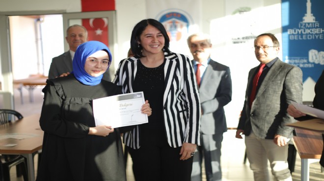 Toplamda 124 saat süren kursun sona ermesinin ardından Deppo Efes’te düzenlenen sertifika törenine İzmir Büyükşehir Belediyesi Genel Sekreter Yardımcısı Ertuğrul Tugay, İzmir Büyükşehir Belediyesi Sosyal Projeler Daire Başkanı Anıl Kaçar, Efes Selçuk Belediye Başkan Yardımcısı Bilgi Keskin, İzmir Büyükşehir Belediyesi Meslek Fabrikası Şube Müdürü Zeki Kapı ve İlçe Halk Eğitim Müdürü Hamdi Bozkurt katıldı.