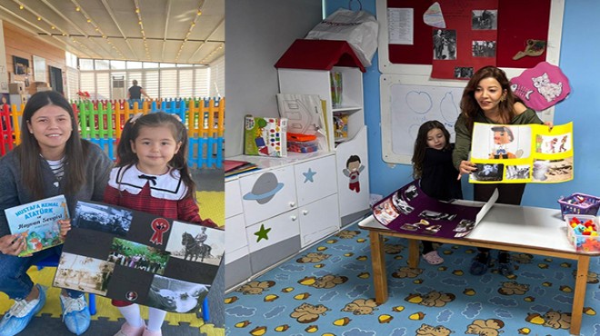 İki yıldır sürdürülen “Dersimiz Atatürk” projesi, çocuklara Atatürk’ün ilke ve değerlerini aşılayarak çocuklarda milli bilinç kazandırmayı sağlıyor. Etkinlik kapsamında çocuklar, aileleriyle birlikte Atatürk’ü anlatan kitapları okuyup araştırma yaparak sınıf arkadaşlarına sunum hazırlıyor. Sunumlarda Atatürk’ün yaşamı, kişiliği, yaptığı yenilikler, anıları ve fotoğraflarla zenginleştirilmiş bilgiler anlatılıyor. Çocukların büyük bir heyecanla katılım sağladığı sunumlar, aynı zamanda merak duygusunu pekiştirerek sorularla Mustafa Kemal Atatürk’ü tanıma imkânı sağlıyor.