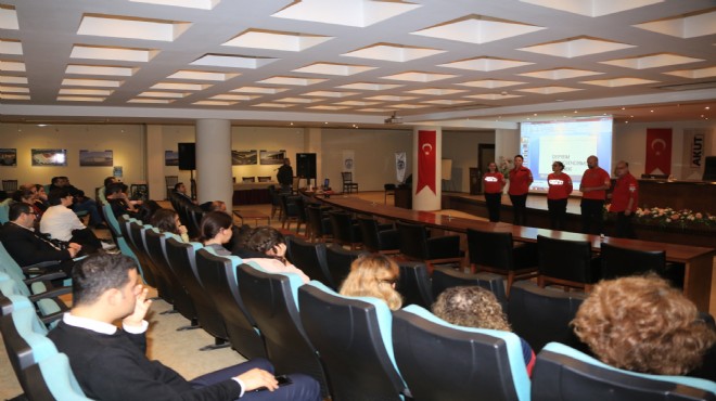Türkiye’de tamamen gönüllü olarak hayat kurtarmak amacıyla çalışan AKUT (Arama Kurtarma Derneği) İzmir Biriminden, Birim Sorumlusu Benan Ediz, Yardımcısı Esra Pullu; Deniz Durmaz, Hande Göksel Doğan, Müjde Müjgan Aksoylu tarafından Prof. Dr. Ahmet Taner Kışlalı Salonu’nda verilen eğitime belediye personeli katıldı.