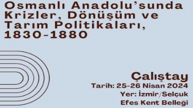 Efes Selçuk Belediyesi, Dokuz Eylül Üniversitesi ve İzmir Kâtip Çelebi Üniversitesi’nin iş birliği ile “Anadolu Çevre Tarihi Söyleşileri” tarafından düzenlenen Osmanlı Anadolusu’nda Krizler, Dönüşümler ve Tarım Politikaları, 1830-1880 Çalıştayı’nda dönemin tarihi, sosyal ve ekonomik yapısı çerçevesinde tarım politikaları ve yaşanan krizler masaya yatırılacak.