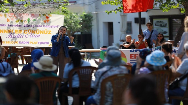 Etkinlikte Efes Selçuk Kadın Platformu adına konuşan Selçuk Kent Konseyi Başkanı Güllü Kartal, Anneler Günü’nün de çocukların ve annelerin daha mutlu olması gerektiğini belirterek; “Son yıllarda yaşanan kadın cinayetleri, İstanbul Sözleşmesi’nden çıkılması, 6284 Sayılı Kanun’un yeterince uygulanmaması, anneler özelinde çocuklarımızın eğitim hayatlarından geleceklerinden endişeli olmamız biz kadınlar için oldukça üzücü. Ülkemizde Ekrem İmamoğlu’nun ve 27 kişinin diplomasının iptali artık hiçbirimizin güvende olmadığı gerçeğini gösteriyor. Protestolara katılan gençlerimizin ibret olsun minvalinde tutuklu yargılanmaları içimizi acıtıyor. Çünkü biz anneyiz. Anne olmak için çocuk doğurmak gerekmiyor. Çocuklarımızın ve gençlerimizin duygularını hissedebilmek için onlar için en iyi geleceği hazırlayabilmek bizim görevimiz. Cennetin biz annelerin ayaklarının altında olmasını istemiyoruz. Biz bu dünyada çocuk ve gençlerimizle beraber cennet ülkemizde cennetteymiş gibi yaşamak istiyoruz. Bunu gerçekleştirmek için çabamız. Kurtuluş yok tek başına ya hep beraber ya hiçbirimiz” dedi.