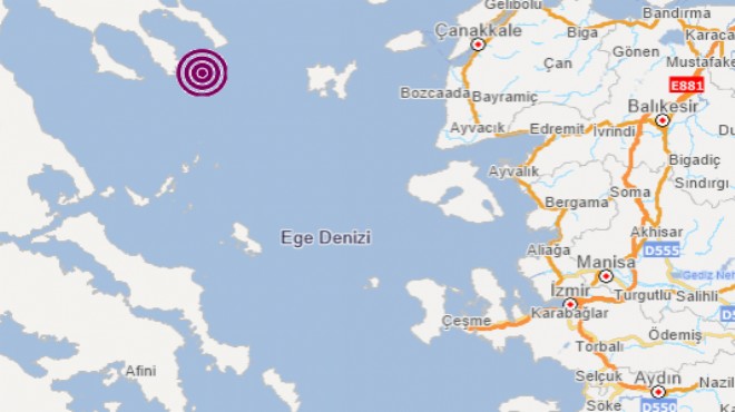 AFAD verilerine göre, Ege Denizi'nde saat 14.48'de 5,3 büyüklüğünde deprem meydana geldi.