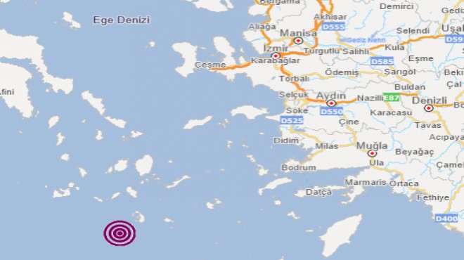 GERÇEKİZMİR - AFAD’ın açıklamasına göre Ege Denizi’nde saat 13.12’de 4.2 büyüklüğünde bir deprem meydana geldi.