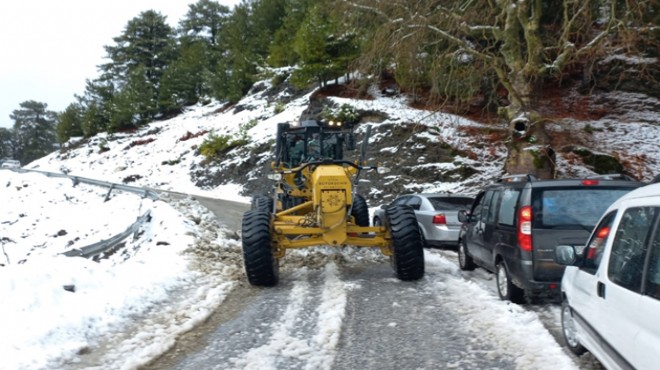İzmir'in Ödemiş ilçesine bağlı Bozdağ Mahallesi'ndeki kayak tesislerine giden yol, kar nedeniyle kapandı.