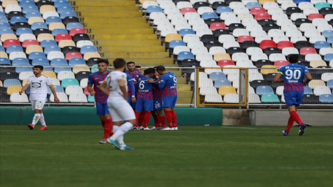5'inci dakikada Altınordu golü buldu. Metehan'ın pasıyla topla buluşup sağdan çalımlarla ceza sahasına giren Muzaffer, meşin yuvarlağı uzak köşeye yolladı: 1-0.